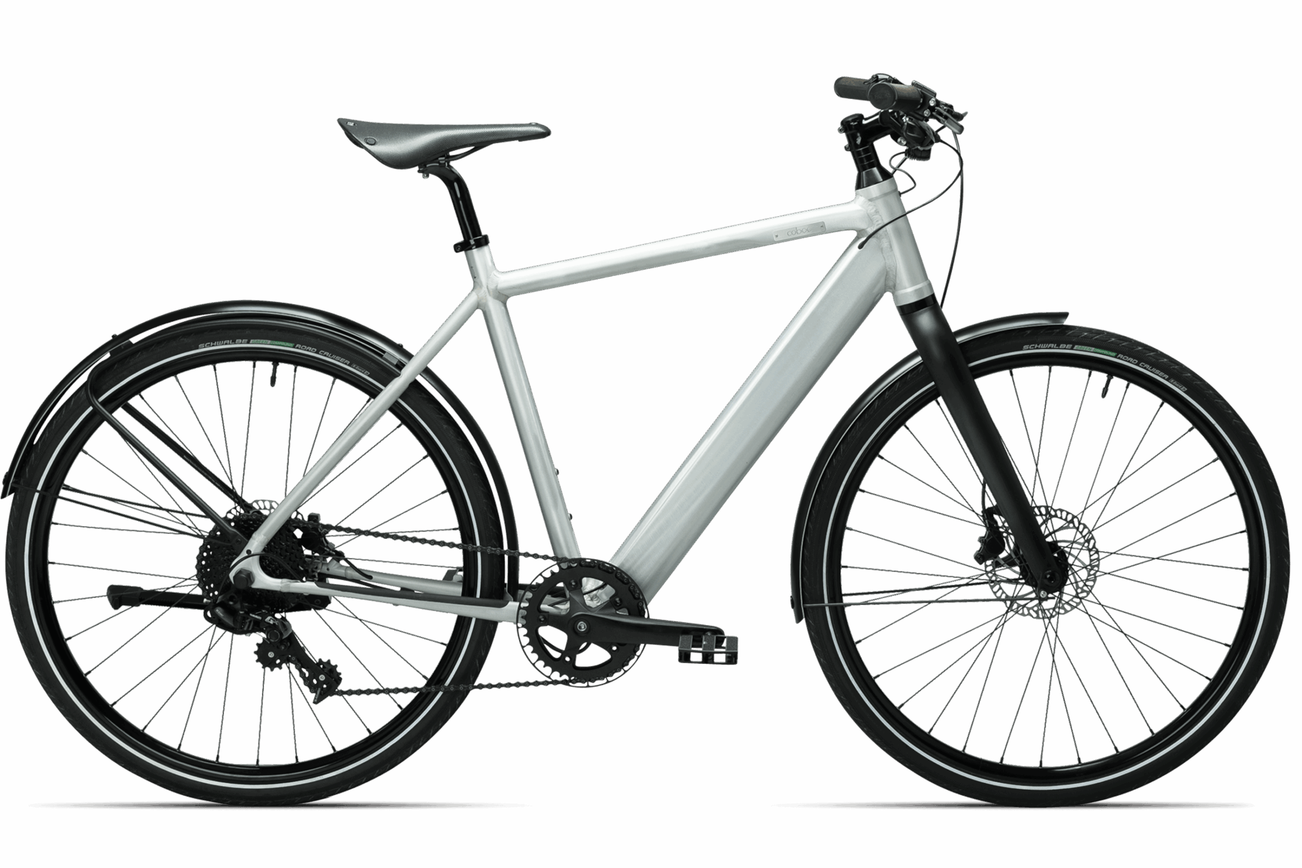 Für präzise Gangwechsel sorgt die SRAM NX 11-Gang-Schaltung, während hydraulische Scheibenbremsen von Riderever (ARC-U) mit 160 mm Scheiben eine zuverlässige Bremsleistung garantieren. Die breiten Schwalbe Road Cruiser Reifen (44-584) bieten hohen Fahrkomfort und Sicherheit auf Asphalt wie auch auf leichtem Schotter.