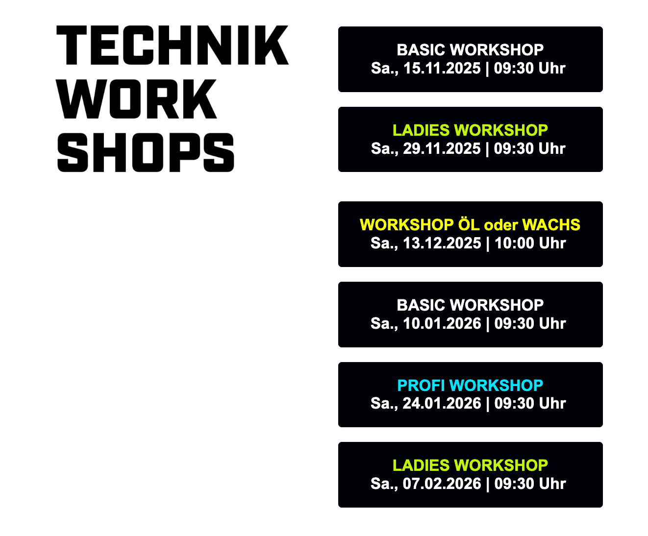 In den nächsten Wochen hast Du die Gelegenheit, an sechs unterschiedlichen Terminen, an einem unterhaltsamen Technik-Workshop in unserer Werkstatt teilzunehmen. Unter Anleitung unseres Werkstattleiters Moritz Thoma und Fahrradfachmann Dominik Müller schraubst Du an Deinem eigenen Bike und reparierst und tauschst Teile selbst aus zusätzlich ganz neu bieten wir unsere Kurse inklusive eines Biomechanik-Grundkurses an. So bist Du auf Tour bestens für den Ernstfall gewappnet und nimmst die Sache selbst in die Hand. Als besonderen Tipp gibt es noch ganz neu unseren Profi-Workshop Ölen oder wachsen. Wir reinigen das Antriebssystem und erklären die Vor und Nachteile.